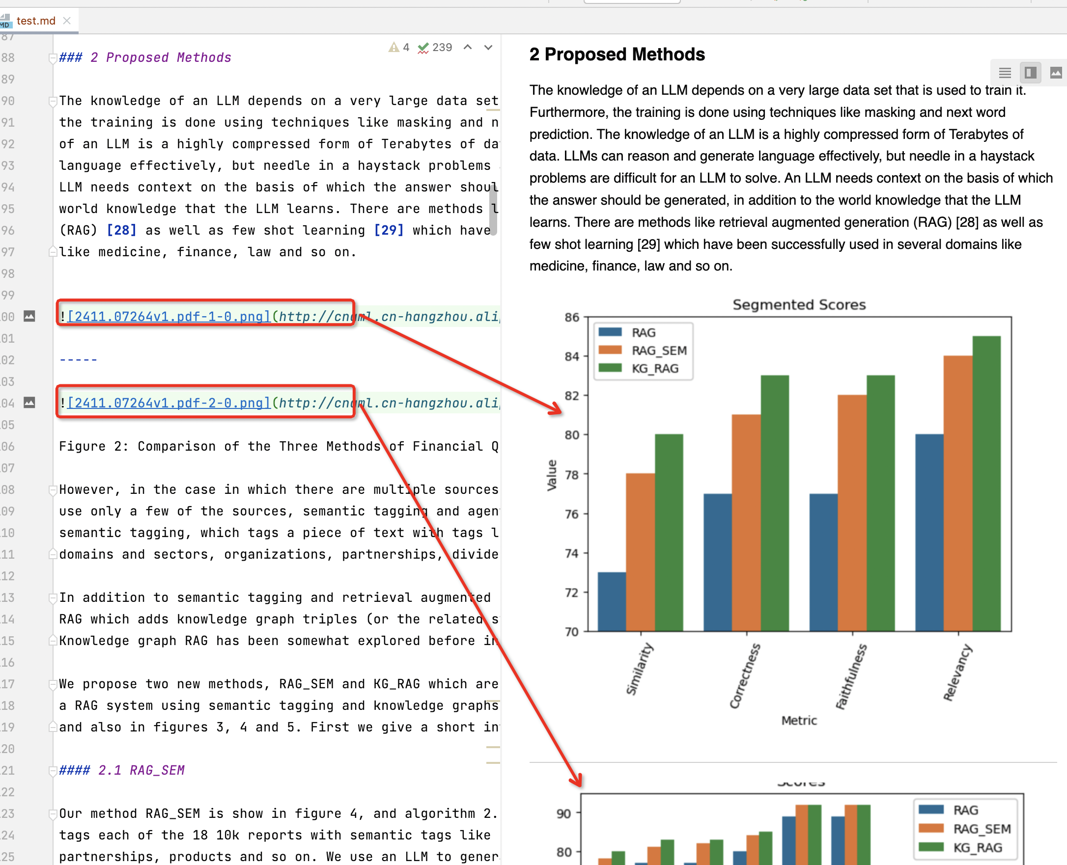 从前面的演示中可以看到 pymupdf4llm 能够提取图片的信息,但是提取的图片的位置与原文不一致,对于大部分场景任然是有效的,因为它的转换效率较高(不需要GPU)。如果使用OCR或者多模态大模型提取PDF文件中的图片和文字准确率会高很多,但是存在成本较高和效率低的问题。