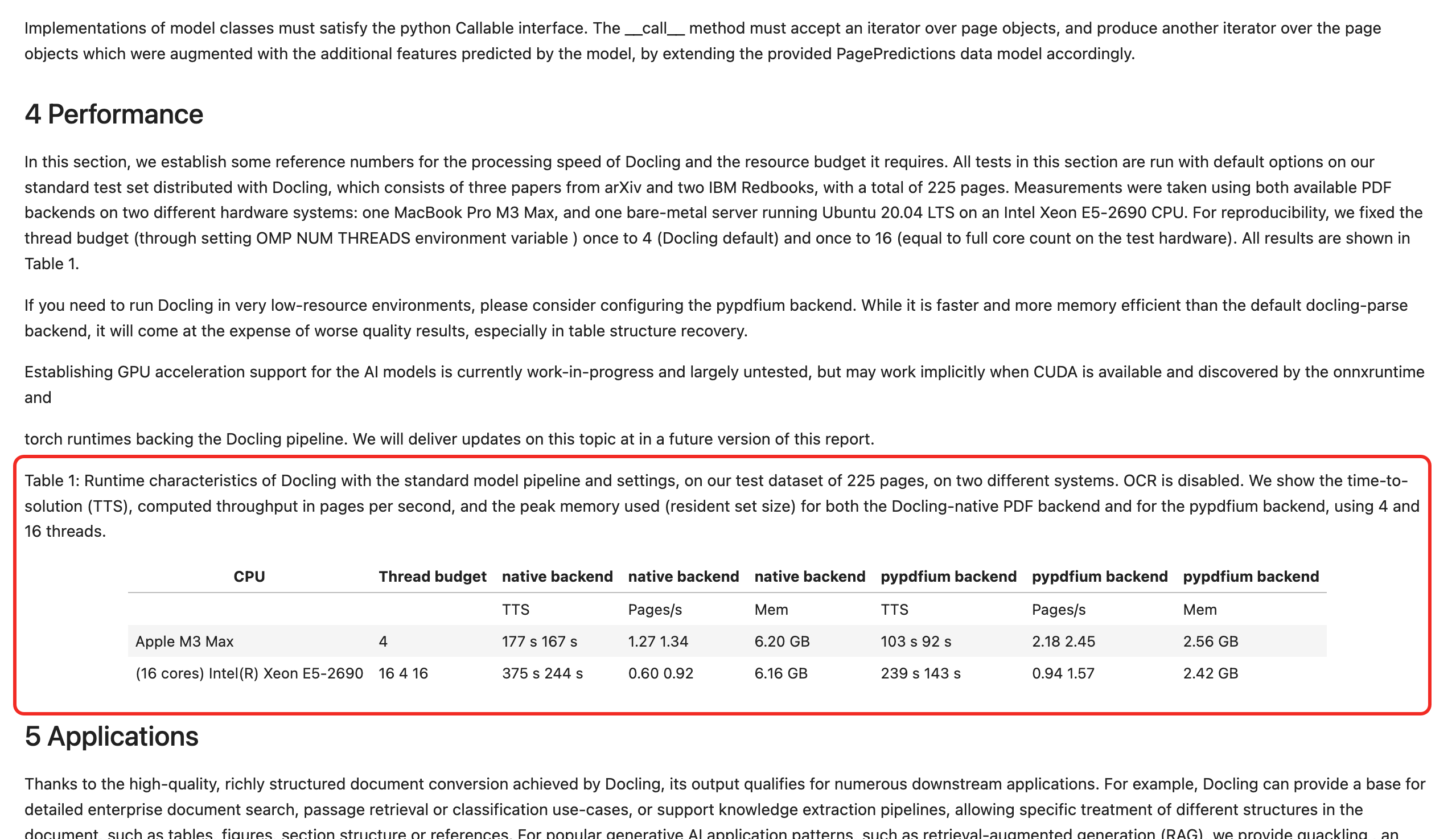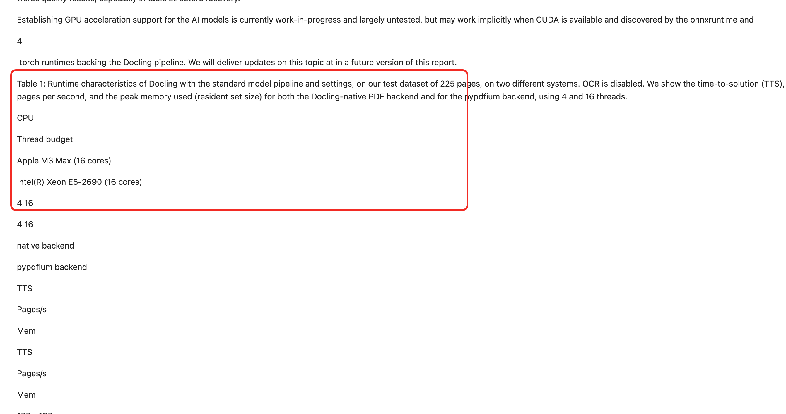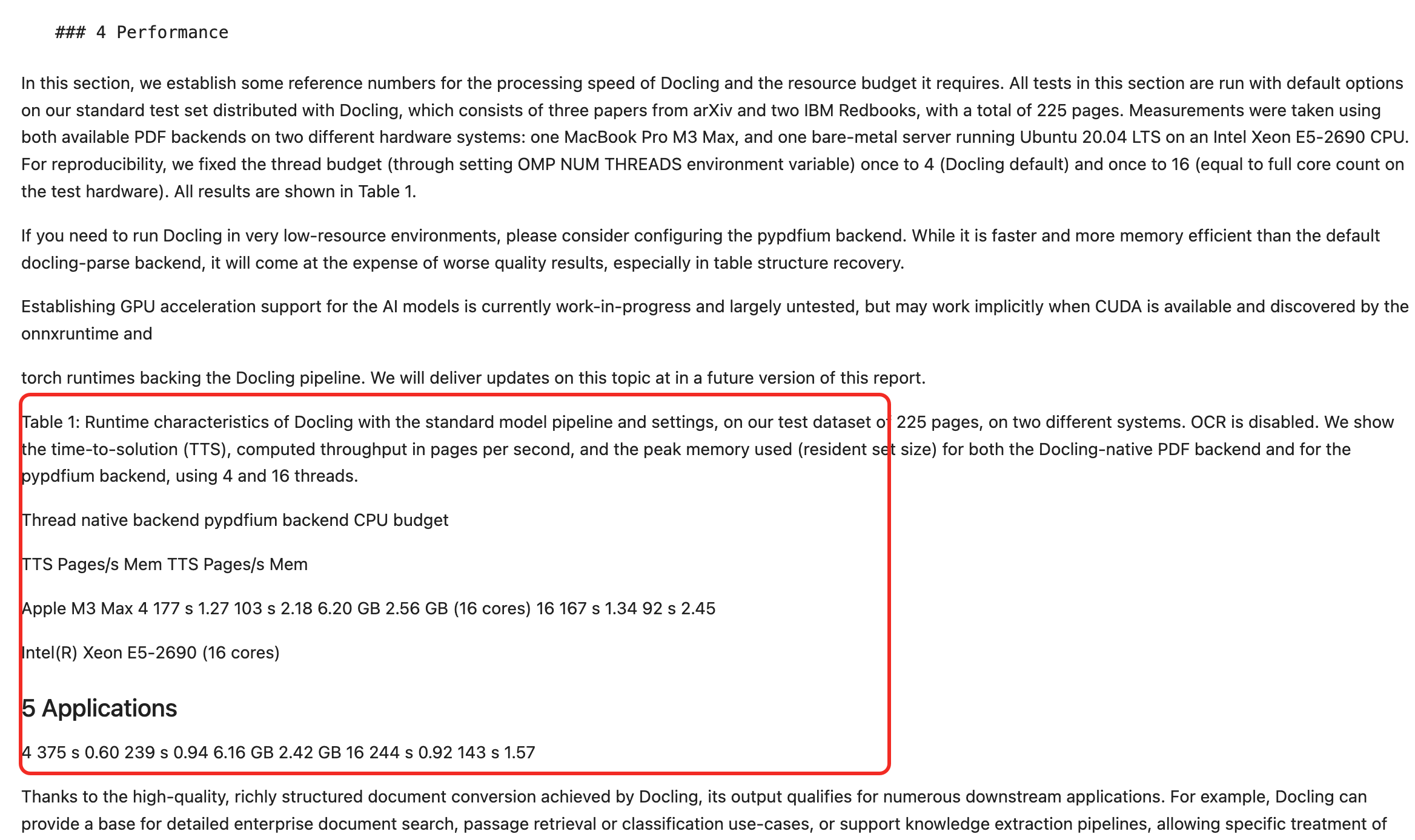 - docling: 使用docling的模型提取pdf的效果还不错,使用cpu运行模型的效率也还可以,并且使用的MIT license对商用比较友好,推荐使用。