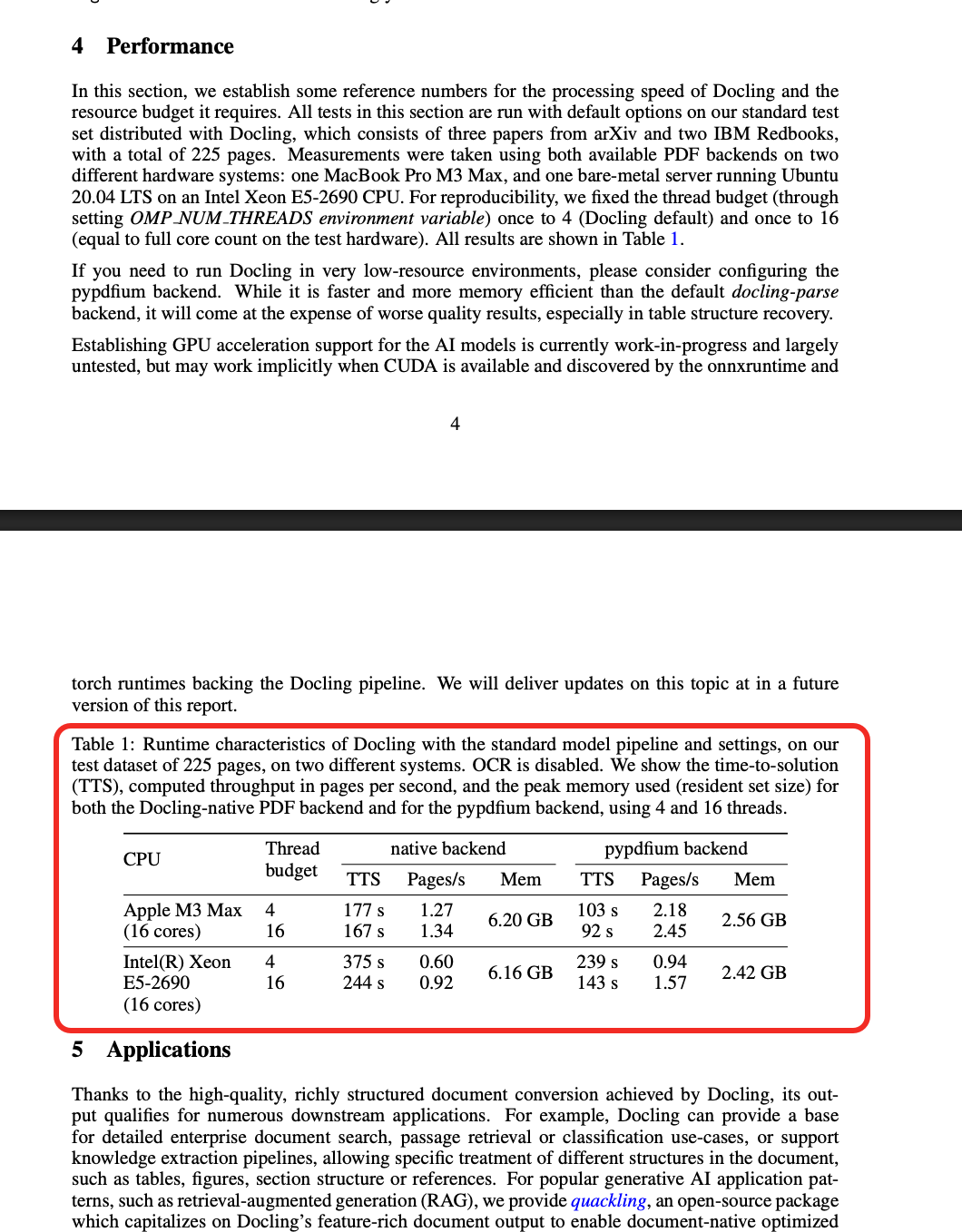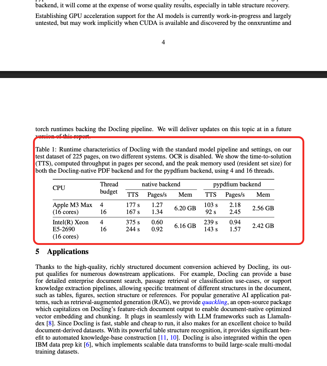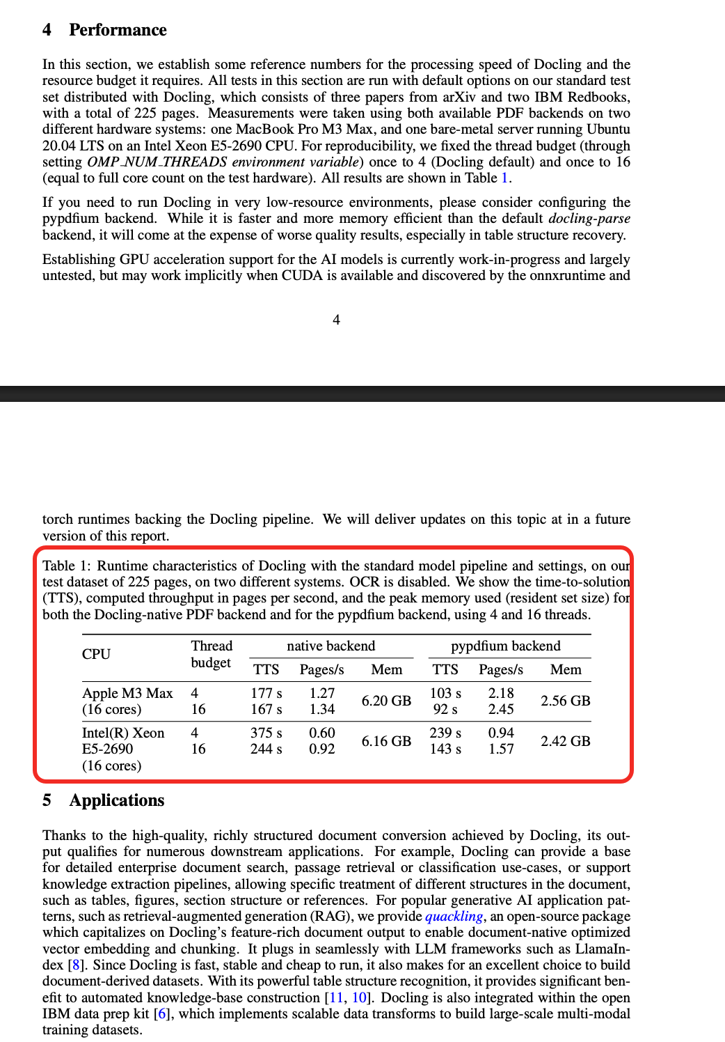 - docling: 使用docling的模型提取pdf的效果还不错,使用cpu运行模型的效率也还可以,并且使用的MIT license对商用比较友好,推荐使用。