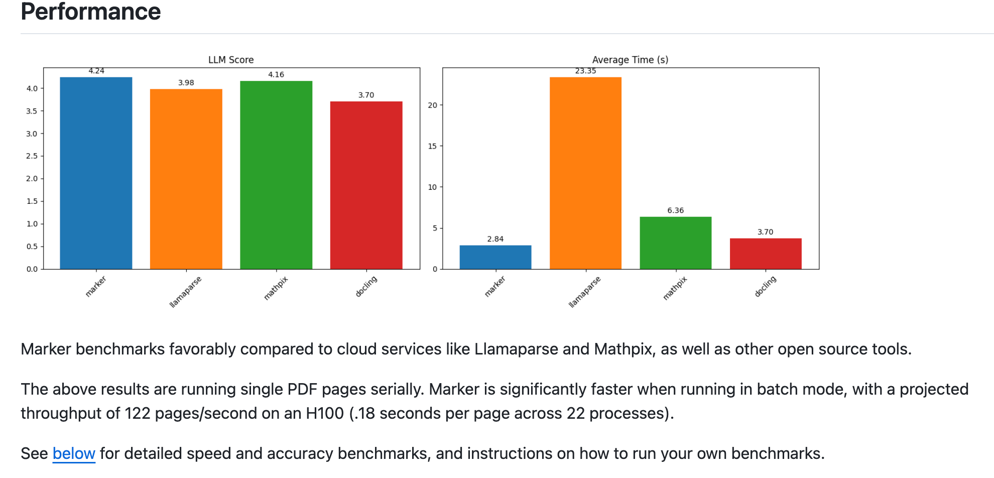 - marker: 根据官方文档的介绍,marker的解析效果要好于 docling,但是由于marker的使用限制,无法商业使用,可以根据使用场景考虑是否使用该工具。
