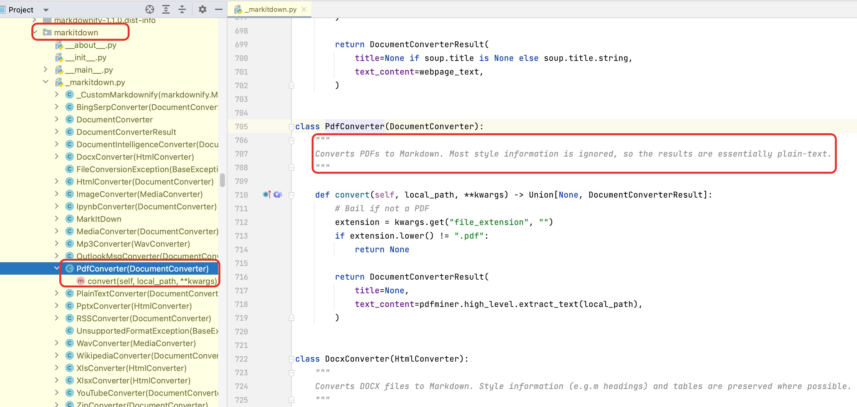查看**markitdown**中转换pdf的源码 **PdfConverter**使用的是 **pdfminer**提取pdf文件纯文本,没有保留格式: